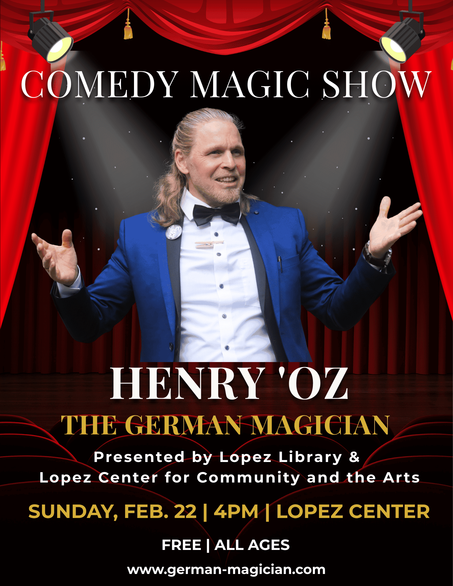 Comedy magic show presented by Lopez Library & Lopez Center for Community and the Arts